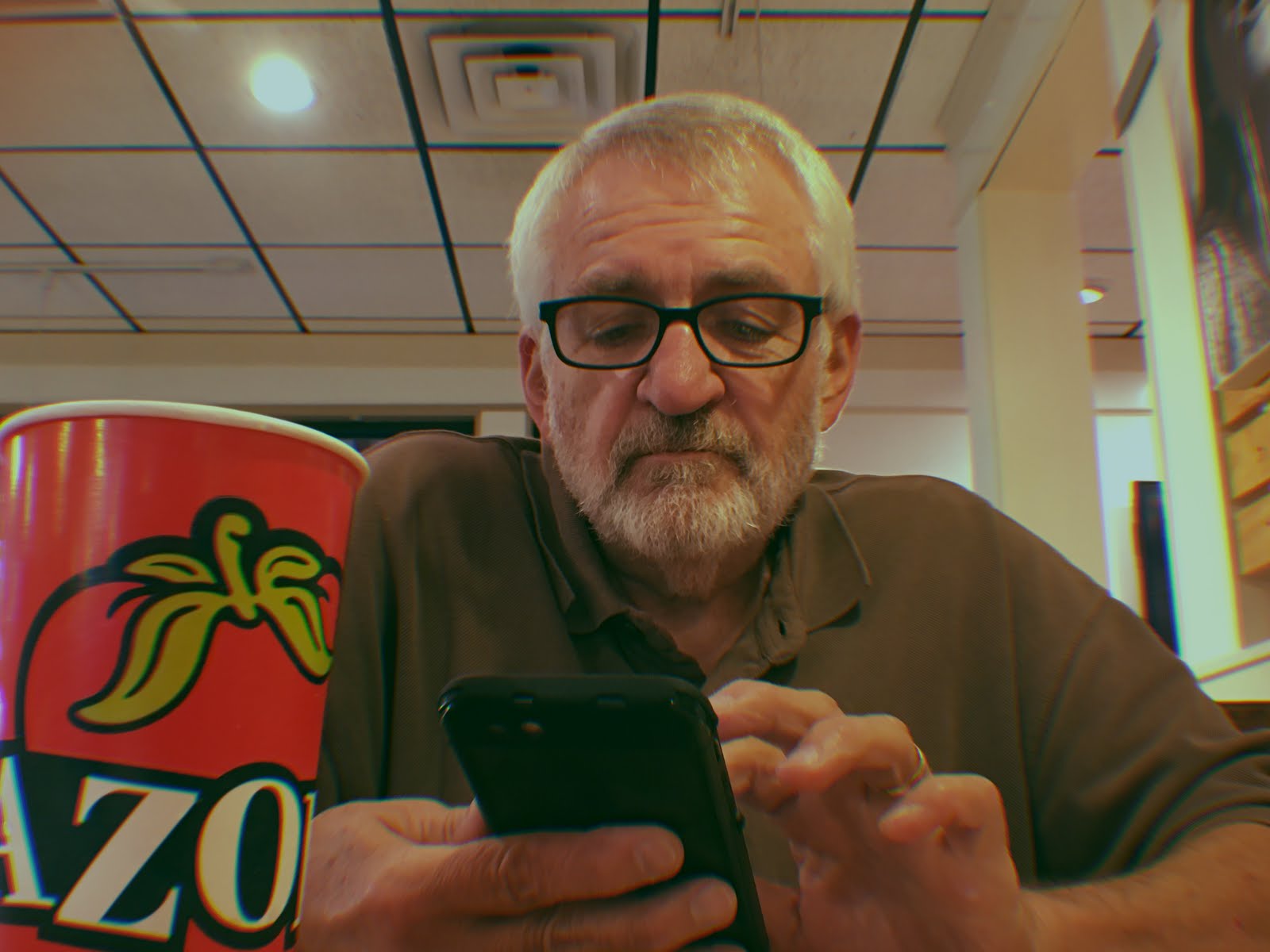 October 11 ~ hubby Neil at our usual Wednesday-night-before-Bible-class supper at Fazoli's (seriously, every Wednesday) ~ snapped this with Gudak camera app