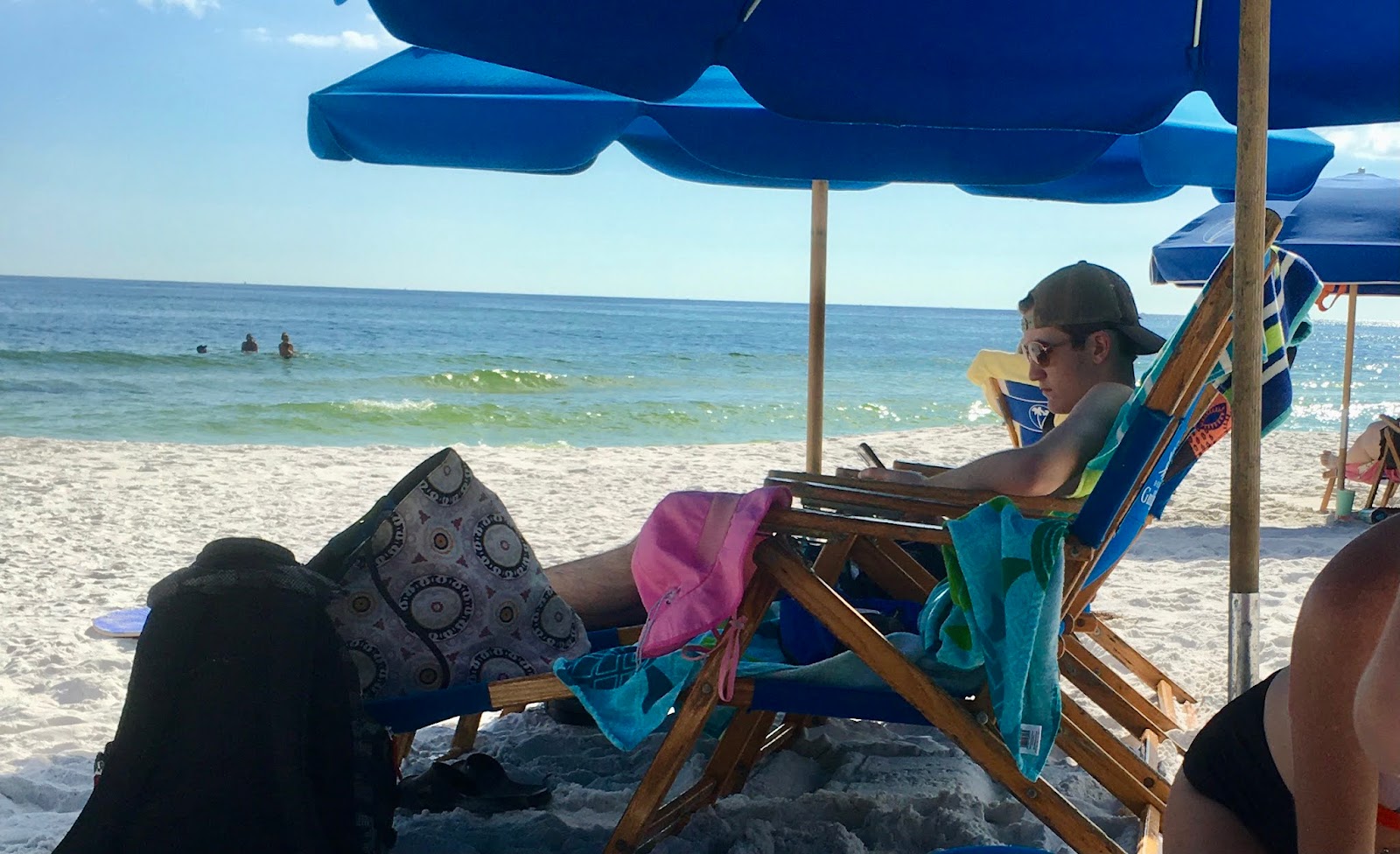 Meanwhile Holly sent this pic from the backseat of their car as Shelby took over the driving and Elijah rode shotgun on their way to join us in Destin. They finally arrived around midnight.