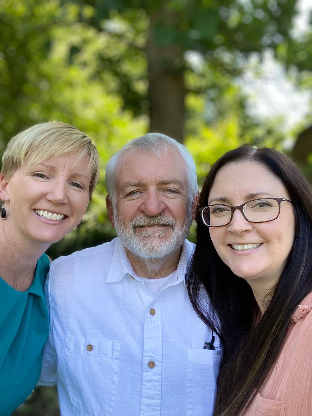 Ella and Knox playing flashlight hide-and-seek with Grandpa